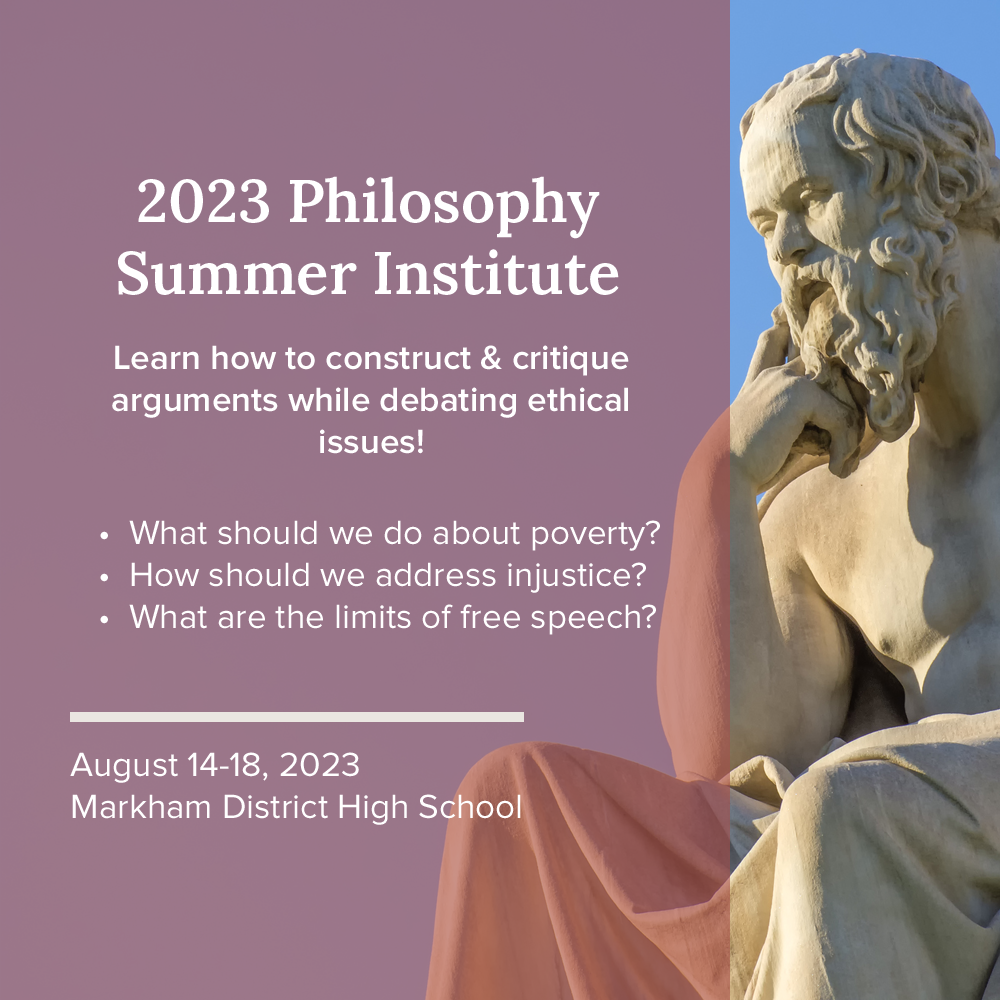 “The program was interesting and fun. The instructors were well-informed and invited you to consider all opinions whilst challenging your own. They promoted and achieved an inclusive environment where everyone was free to share their thoughts.” — Student, 2023 Philosophy Summer Academy